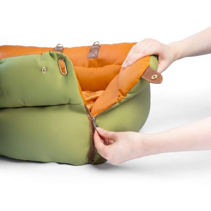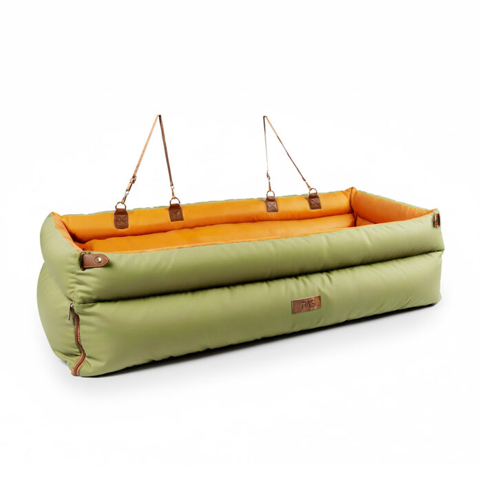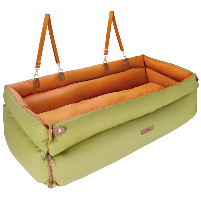 Fotelik RAGI łączy w sobie funkcję bezpiecznego siedziska samochodowego oraz wygodnego legowiska. To praktyczne rozwiązanie dla osób podróżujących z pupilem – w aucie, na spacerze, czy w hotelu.