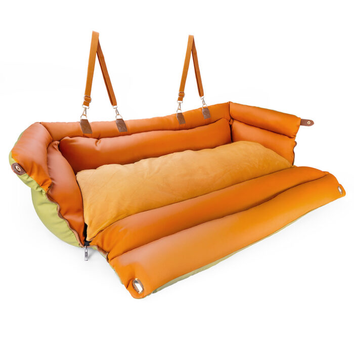 Łączy funkcję transportera i legowiska, zapewniając psu bezpieczeństwo w czasie jazdy oraz wygodne miejsce do odpoczynku po jej zakończeniu.