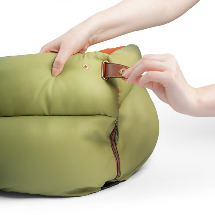 Wnętrze fotelika zostało wyposażone w dodatkowy zamek, który umożliwia rozpięcie poszycia i łatwe wyjęcie wypełnienia. To praktyczne rozwiązanie ułatwia czyszczenie fotelika i utrzymanie higieny.