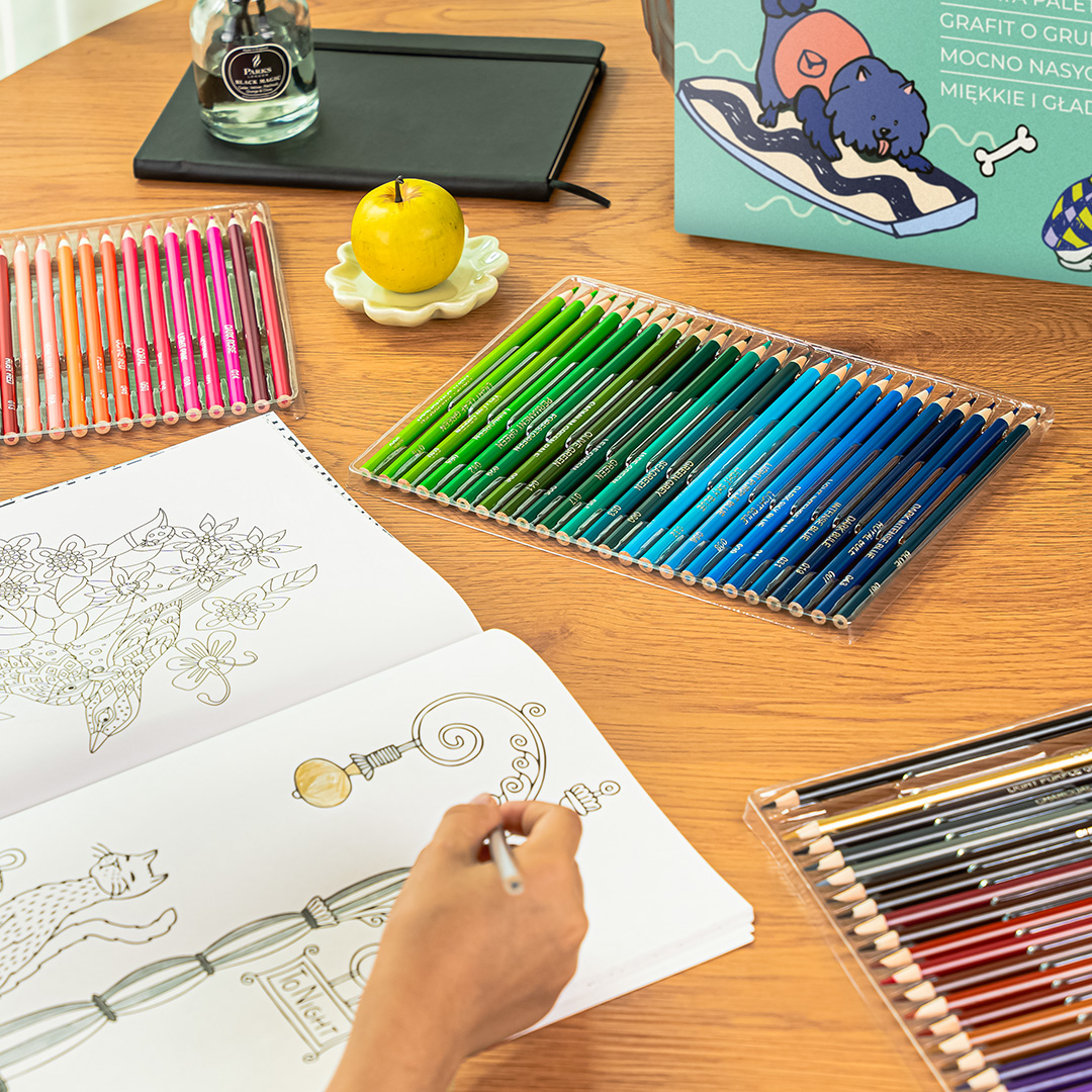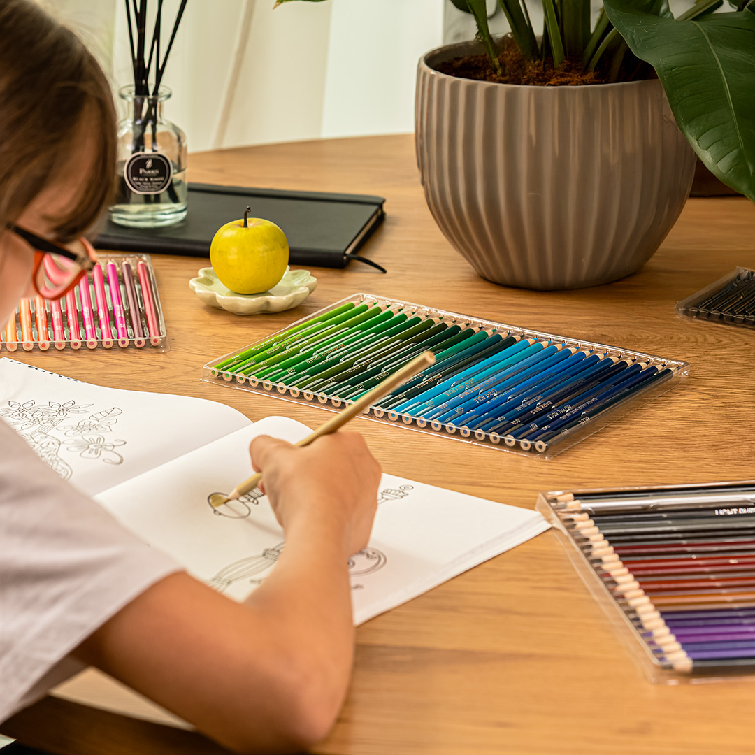 - Bezpieczeństwo: Plastikowe etui jest wygodne do przenoszenia, co sprawia, że możesz zabrać swoje kredki ze sobą wszędzie. Dzięki tackom wszystkie kolory są pod ręką i utrzymane w należytym porządku, dzięki czemu zawsze będziesz gotowy do tworzenia w dowolnym miejscu i czasie.
