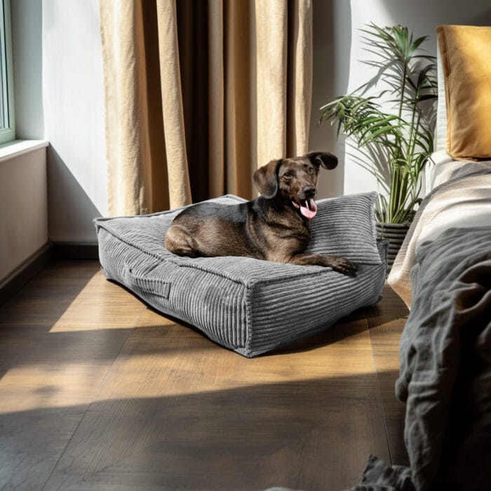 Wygodne i miękkie legowisko dla psa w eleganckim, jasnoszarym kolorze to idealne miejsce do codziennego odpoczynku Twojego pupila. Wykonane z wysokiej jakości sztruksu tapicerskiego, który jest przyjemny w dotyku, a jednocześnie wytrzymały na intensywne użytkowanie. Dzięki starannemu szyciu oraz solidnym materiałom legowisko długo zachowa swój estetyczny wygląd. Nowoczesny design sprawia, że posłanie pasuje do każdego wystroju – od klasycznego po współczesny.