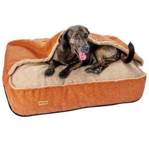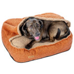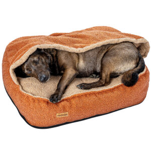 - Posłanie z kieszenią – konstrukcja typu „norka” to idealne schronienie dla psów, które lubią się chować, szukają ciepła lub wyciszenia.