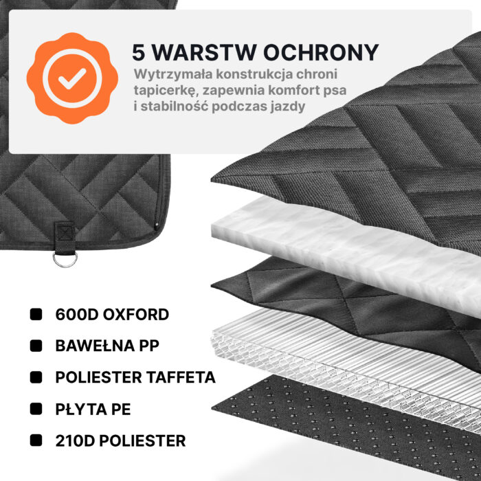 ✔️ HAMAK: To maksymalna ochrona całej tylnej kanapy, podłogi, drzwi oraz oparć przednich foteli.