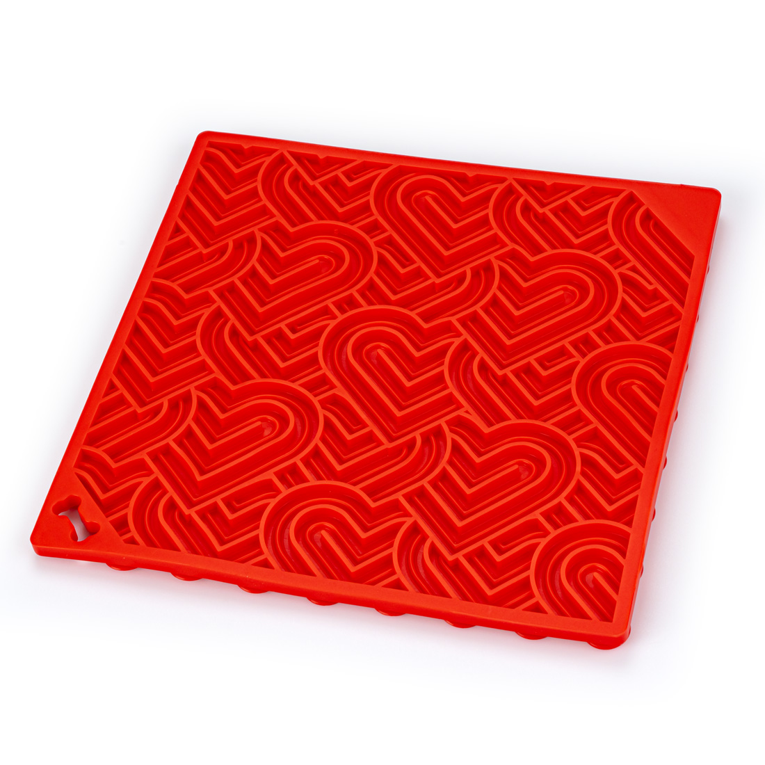 Mata do lizania dla psa 20×20 cm Kształt Serca, silikonowa, czerwona