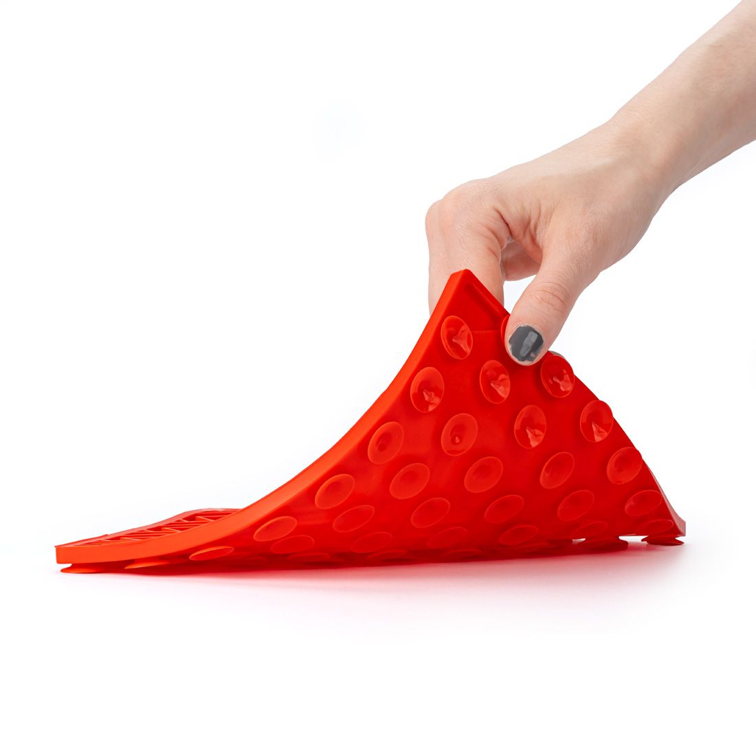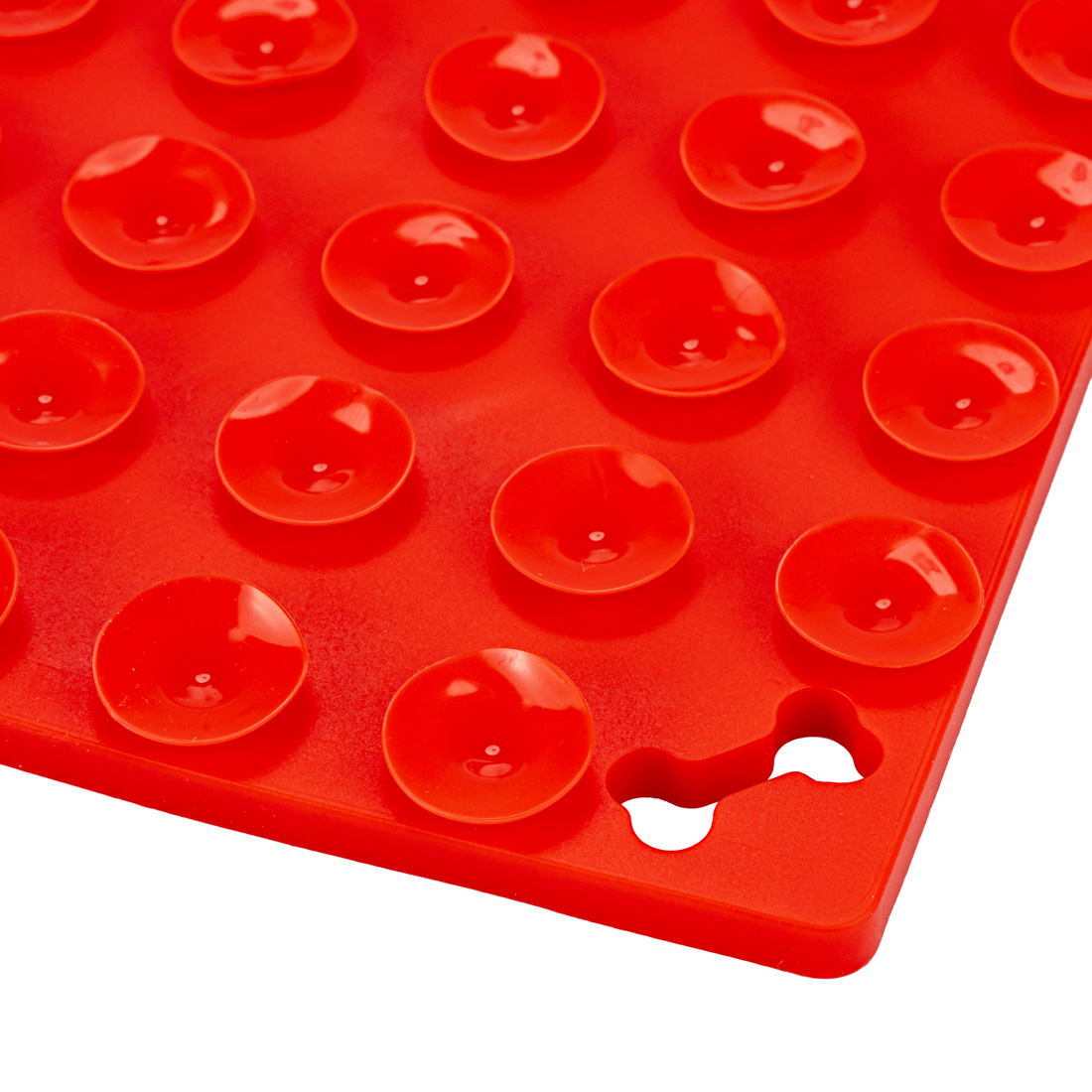 Dzięki przyssawkom na spodzie, matę przyjmujesz do bocznej ściany wanny lub lodówki — to stabilne mocowanie zmienia zasady gry przy pielęgnacji pupila.