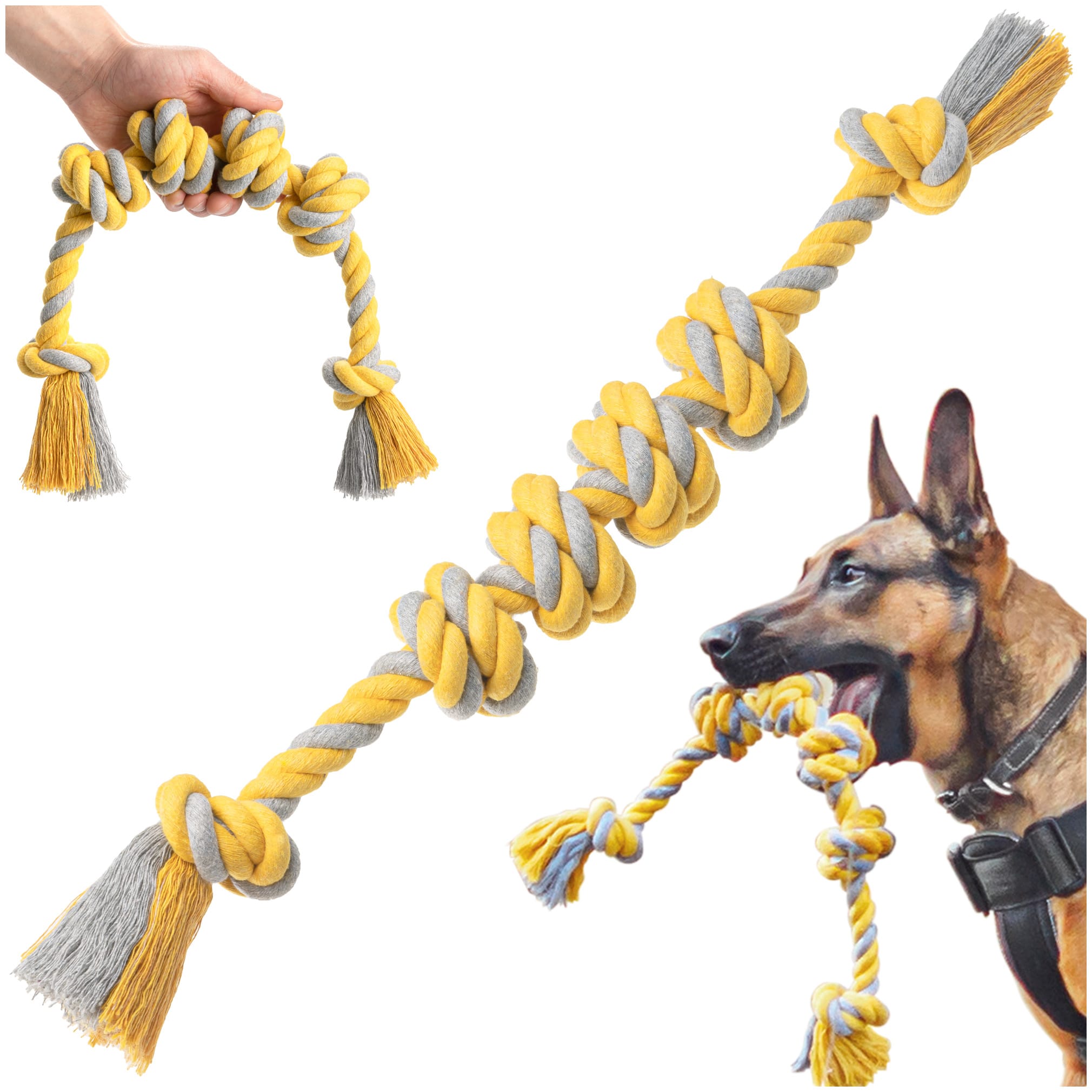 Gadżet posiada sześć węzłów, które zapewnią Tobie i Twojemu czworonożnemu przyjacielowi mocny i wygodny chwyt podczas zabawy. Taki sposób wykonania pozwala psu na swobodne gryzienie. Jest to najbardziej popularna i sprawdzona forma szarpaka, którą uwielbia każdy psiak. Nasz szarpak świetnie sprawdzi się jako prezent dla pupila! Podczas zakupu należy pamiętać, że żaden szarpak dla psa nie jest niezniszczalny i ulega zużyciu. Pozostawienie go z psem bez nadzoru opiekuna może skutkować przyspieszonym zużyciem lub zniszczeniem zabawki.