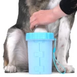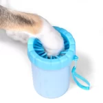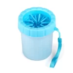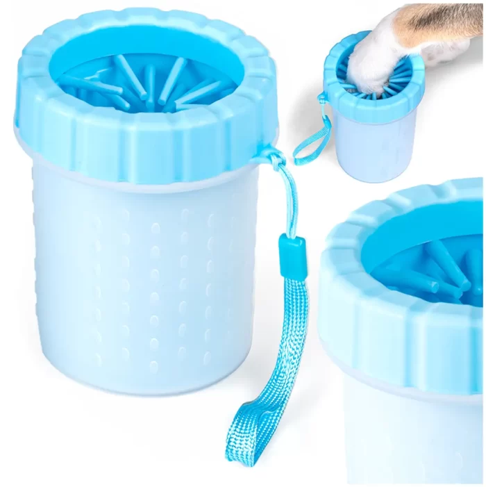 Skuteczny i prosty w obsłudze niebieski kubek plastikowy z silikonowymi wypustkami do czyszczenia łap psa lub kota w rozmiarze S/M. Szybko i sprawnie usuwa błoto, piasek i wszelkie nieczystości z łapki.