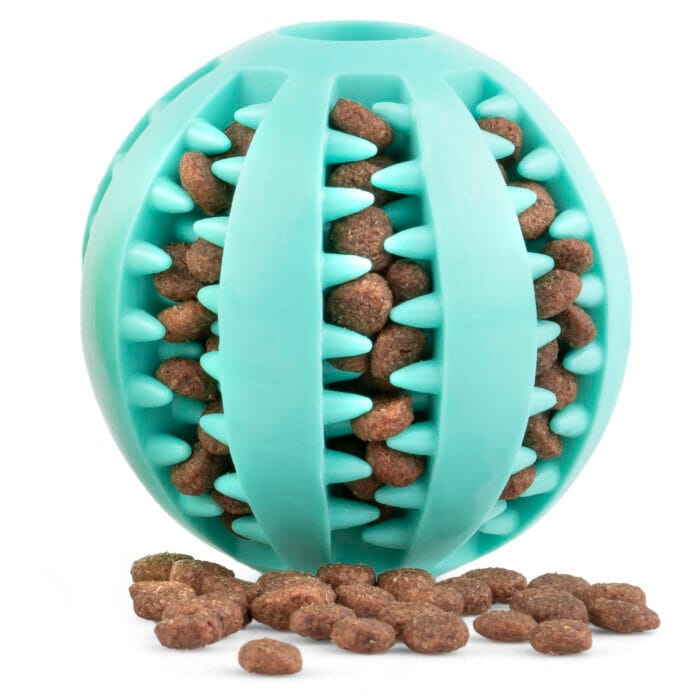 Piłka na przysmaki, wspomaga higienę zębów, dostarcza mnóstwo frajdy i spowalnia jedzenie Twojego pupila.