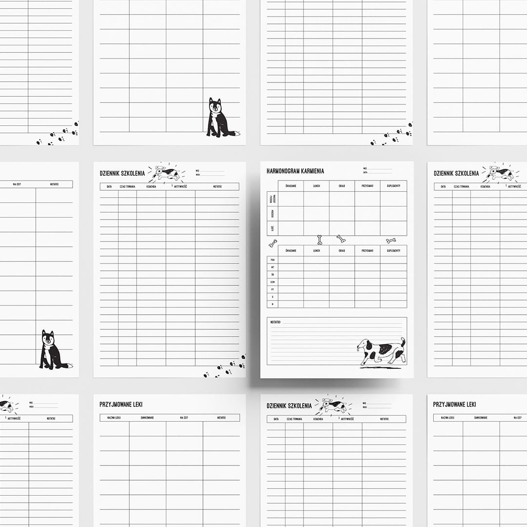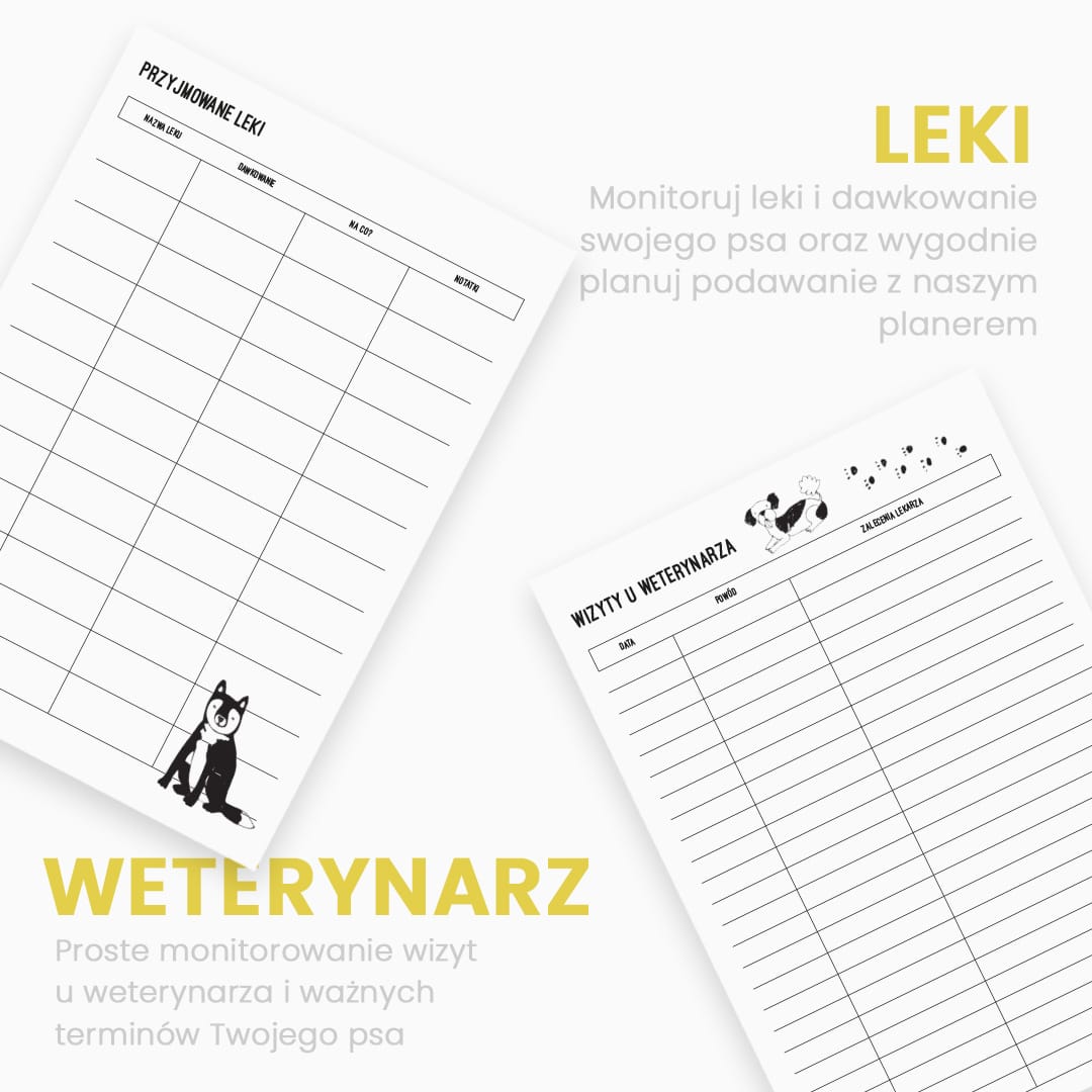 Zadbaj o zdrowie i codzienną rutynę swojego psa dzięki praktycznemu planerowi do druku! To idealne narzędzie dla każdego właściciela, który chce mieć pełną kontrolę nad wizytami u weterynarza, podawanymi lekami, harmonogramem karmienia i procesem szkolenia.