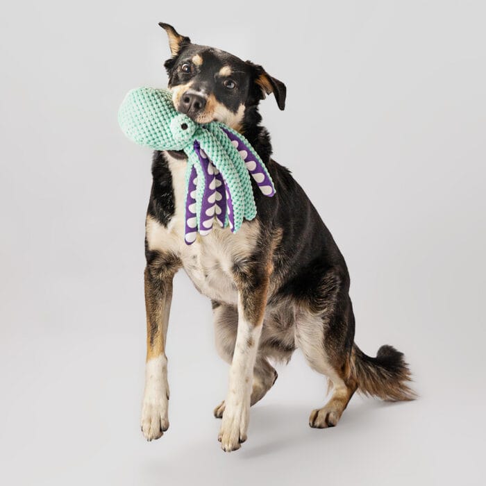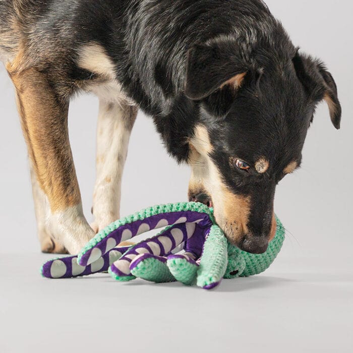 Spokój i harmonia: Behawioryści podkreślają, że odpowiednie zabawki pomagają rozładować emocje i stres psa, zmniejszając jego destrukcyjne zachowania. Ośmiornica, dzięki swoim właściwościom, skupi uwagę i energię psa, odwracając jego uwagę od mebli i innych przedmiotów w domu.