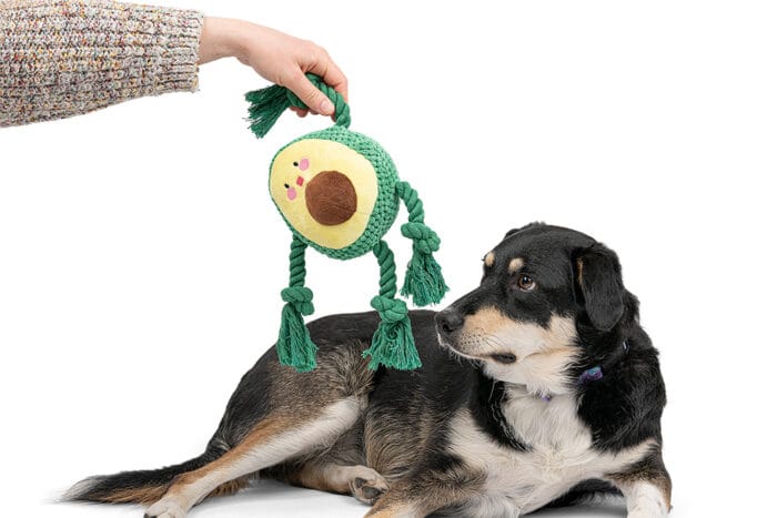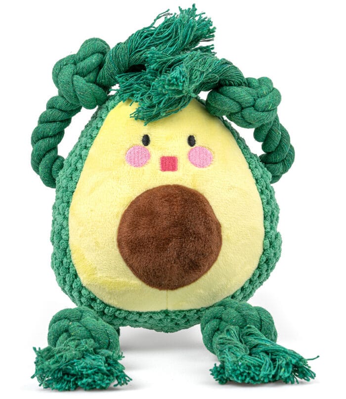 Zabawa na pierwszym miejscu: Awokado zostało zaprojektowane tak, aby zainteresować psa. Uroczy wyraz twarzy, przyciągająca wzrok kolorystyka, liny z frędzlami oraz ukryta piszczałka sprawią, że zabawka szybko stanie się ulubionym towarzyszem zabaw twojego pupila.