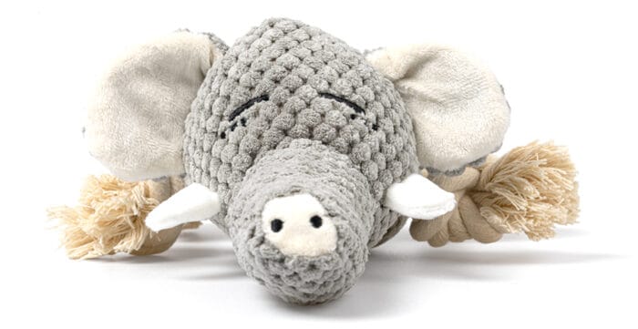 ● WYTRZYMAŁA – pluszowy słoń jest przeznaczony specjalnie dla psiej szczęki. Materiał jest nieregularny, co pobudza zwierzaka do aktywności.