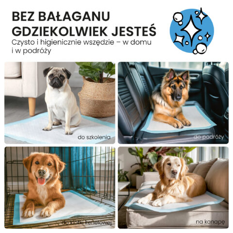 ✔ Podczas podróży: chronią tapicerkę, transportery i zapewniają czystość w nowym miejscu.