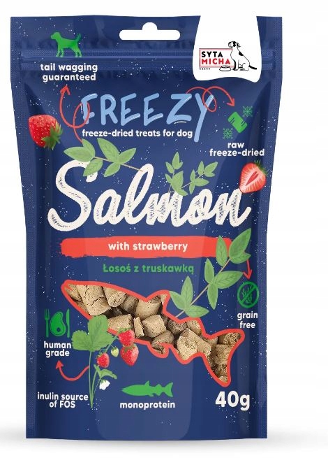 SYTA MICHA Liofilizowane przysmaki dla psa Łosoś Truskawka  FREEZY 40 g