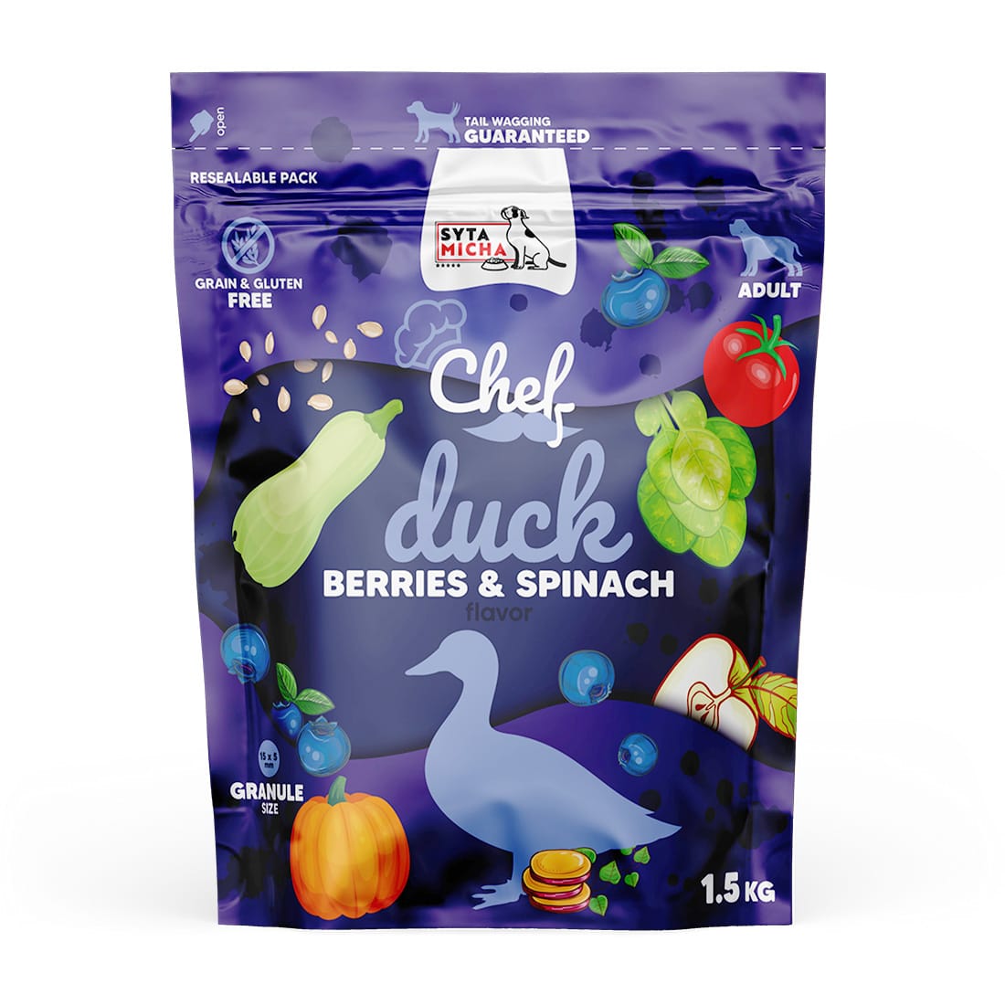 Syta Micha Sucha Karma dla Psa Kaczka, Jagody i Szpinak 1,5 kg Bezzbożowa