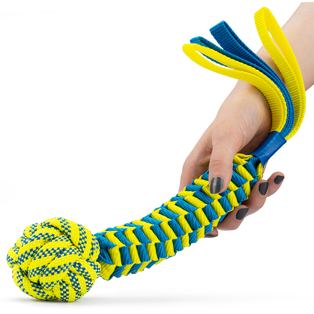 Pętla-uchwyt z drugiej strony daje Ci pełną kontrolę nad zabawą w przeciąganie i chroni dłonie podczas dynamicznego siłowania się z pupilem.