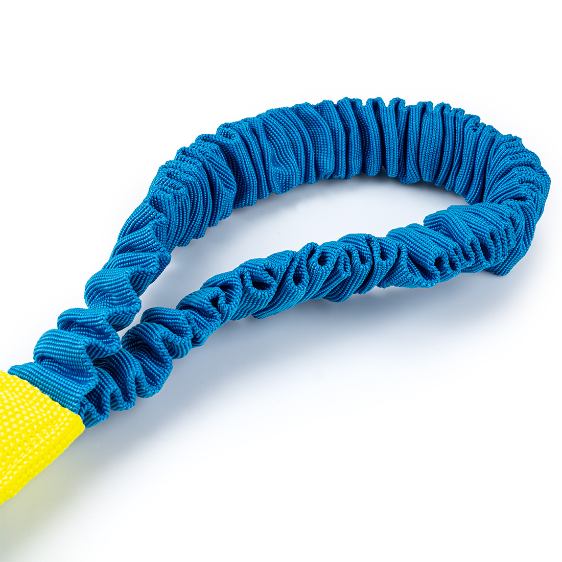 Szarpak z amortyzatorem działa inaczej — elastyczny pas łagodnie wyhamowuje ruch, zamieniając gwałtowne szarpnięcie w płynny opór.