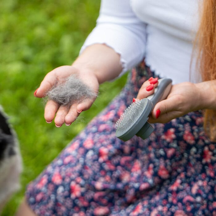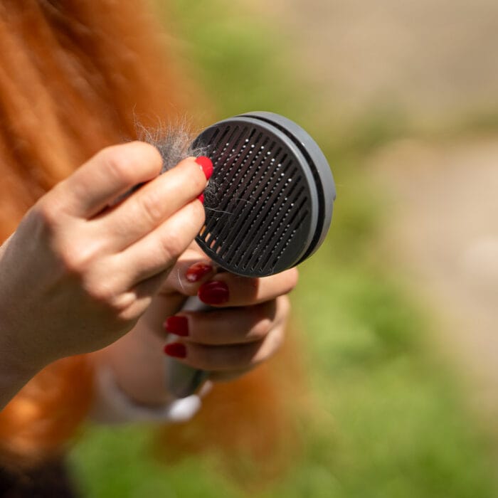 Wypadająca sierść psów i kotów często stanowi wyzwanie dla ich właścicieli, szczególnie mających na uwadze utrzymanie porządku w mieszkaniu. Zbitki sierści na podłodze, meblach i w powietrzu często przylegają do ubrań roznosząc kurz i szkodliwe alergeny oraz wymuszają częste sprzątanie mieszkania. Najlepszym sposobem na to zjawisko jest regularne szczotkowanie sierści naszego pupila przy pomocy szczotki, która została specjalnie zaprojektowana tak, by skutecznie i szybko usuwać wypadające włosy z futra naszego psa czy kota. Szybko, czysto i przyjemnie – wszystko o samoczyszczącej szczotce dla psa Regularne stosowanie urządzenia pozwala znacząco zredukować lininie, a co za tym idzie zbieranie się sierści na meblach, podłodze i ubraniach. Szczotka bez uszkadzania skóry usuwa martwe włosy. Wbudowany mechanizm AUTO CLEAN pozwala jednym przyciskiem zebrać sierść i wyczyścić szczotkę. Podczas zabiegu urządzenie delikatnie masuje skórę zwierzaka, jednocześnie rozprowadzając jej naturalny tłuszcz, który nabłyszcza sierść. W przypadku kotów, regularne usuwanie martwych włosów pomaga utrzymać sierść w dobrym stanie, a także redukuje powstawanie jej zbitków w układzie pokarmowym kota, pozytywnie wpływając na jego działanie.