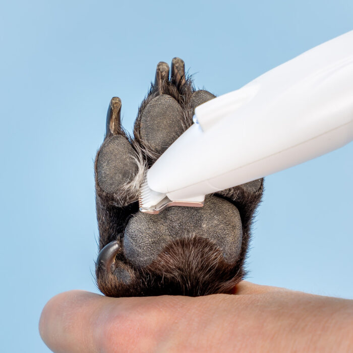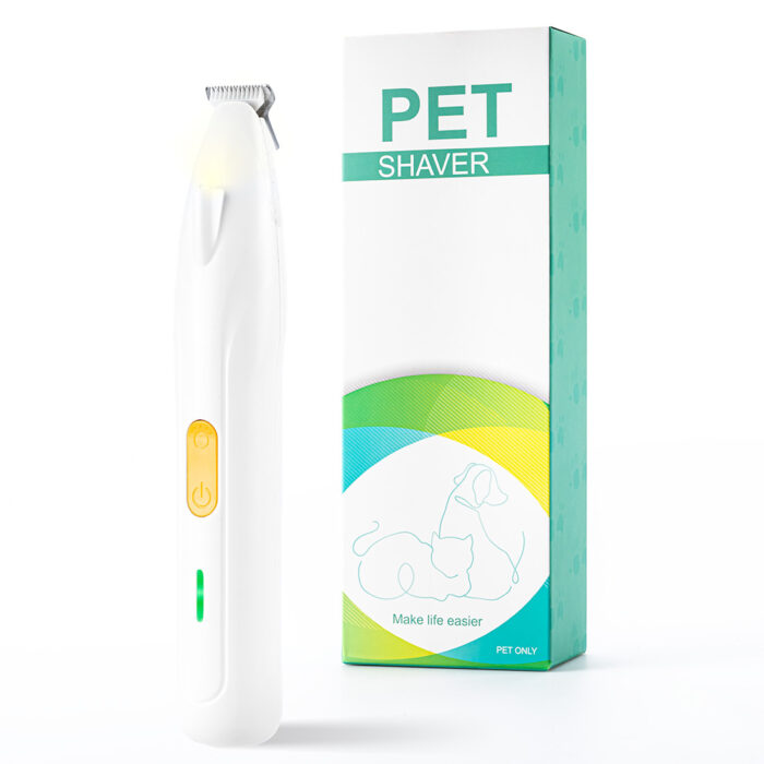 Bezprzewodowy trymer z LED do precyzyjnego przycinania sierści psa lub kota w trudno dostępnych miejscach. Idealny do pielęgnacji łap, uszu i pyska – lekki, bezpieczny i wygodny w obsłudze.